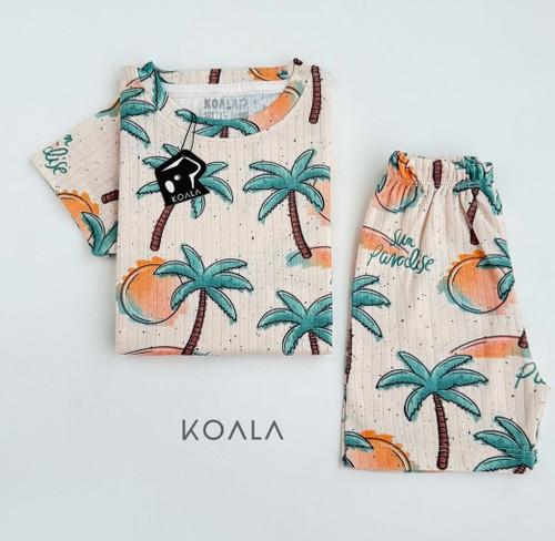 ست راحتی کبریتی بچگانه تیشرت شلوارک طرح هاوایی برند کوالا