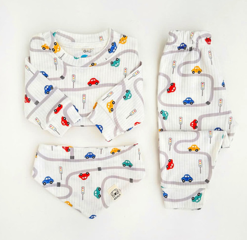 ست سه تکه نوزادی(بلوزو شلوار و دستمال گردن)طرح ماشین🚙