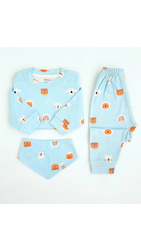 ست سه تکه نوزادی (بلوز و شلوار و دستمال گردن) طرح حیوانات و رنگین کمان🌈