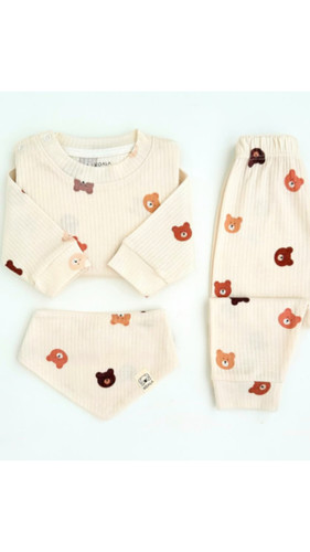 ست سه تکه نوزادی(بلوز و شلوار و دستمال گردن) طرح تدی🐻