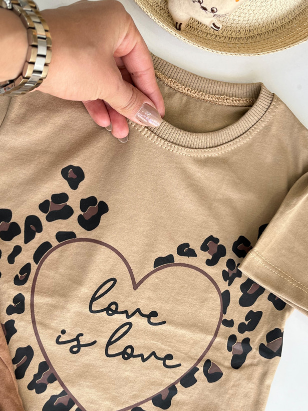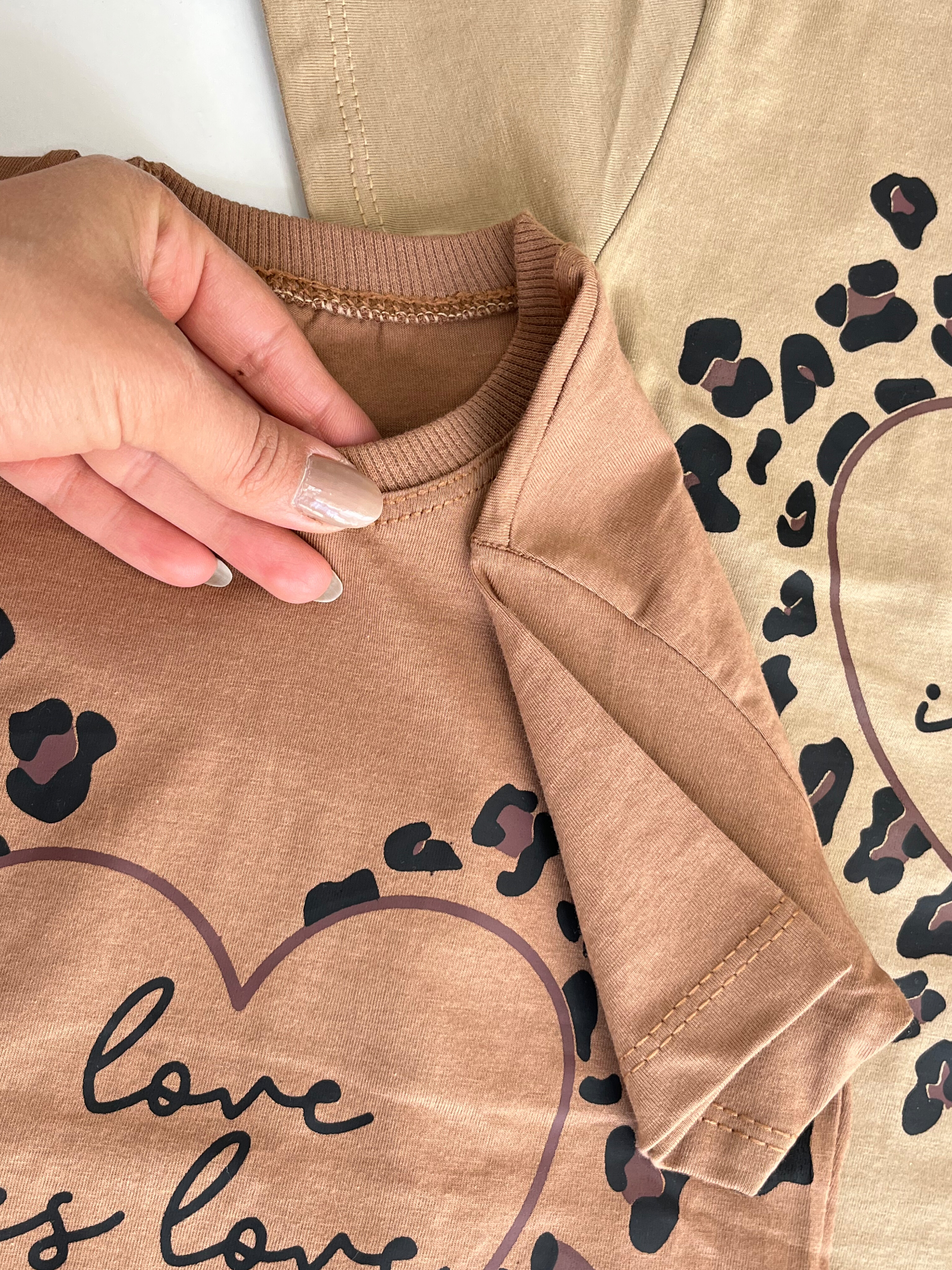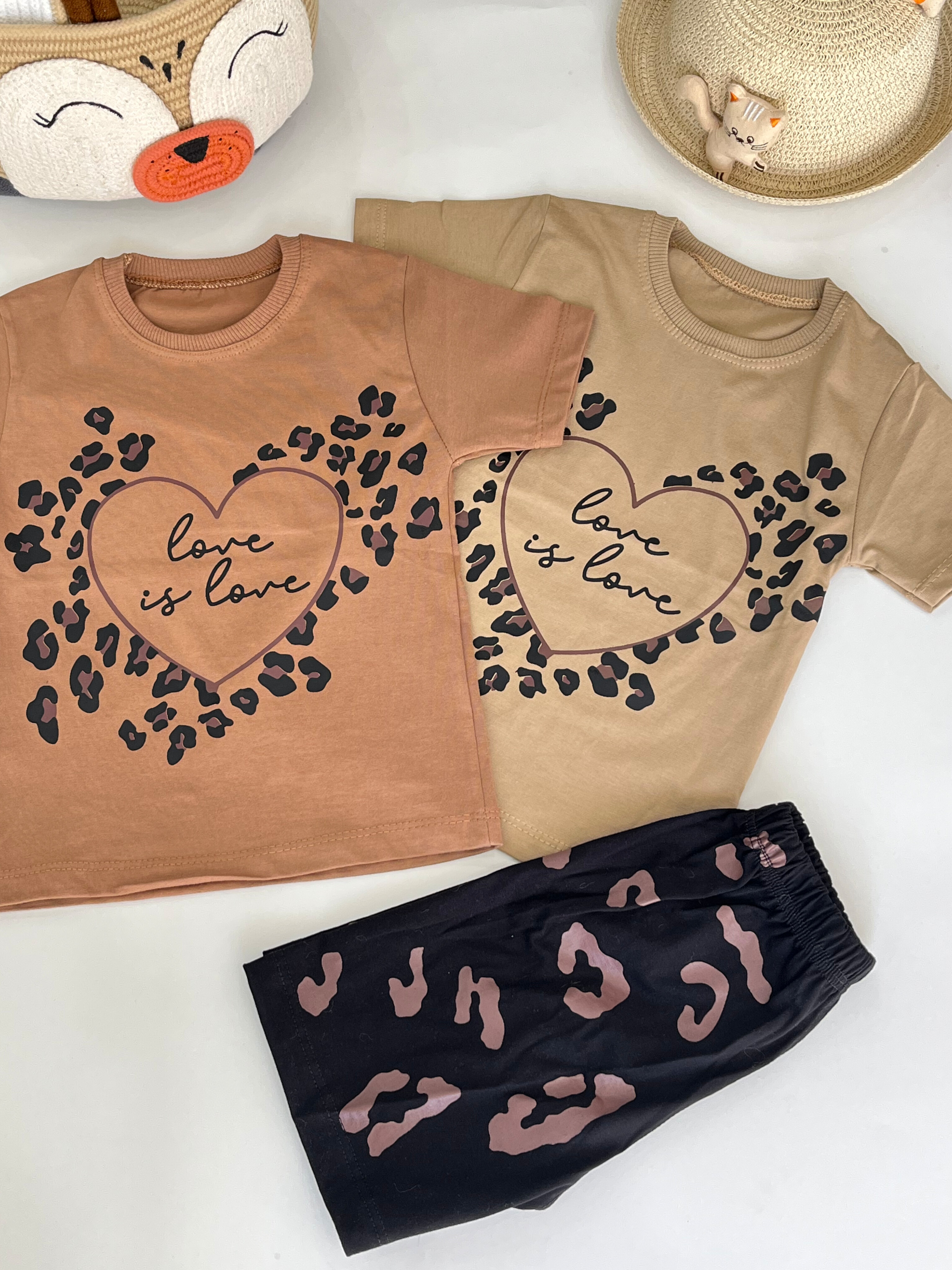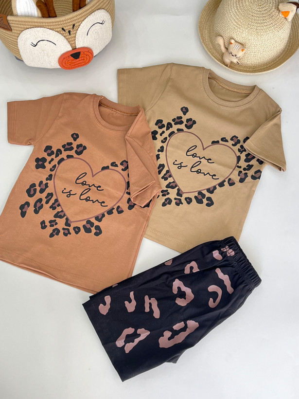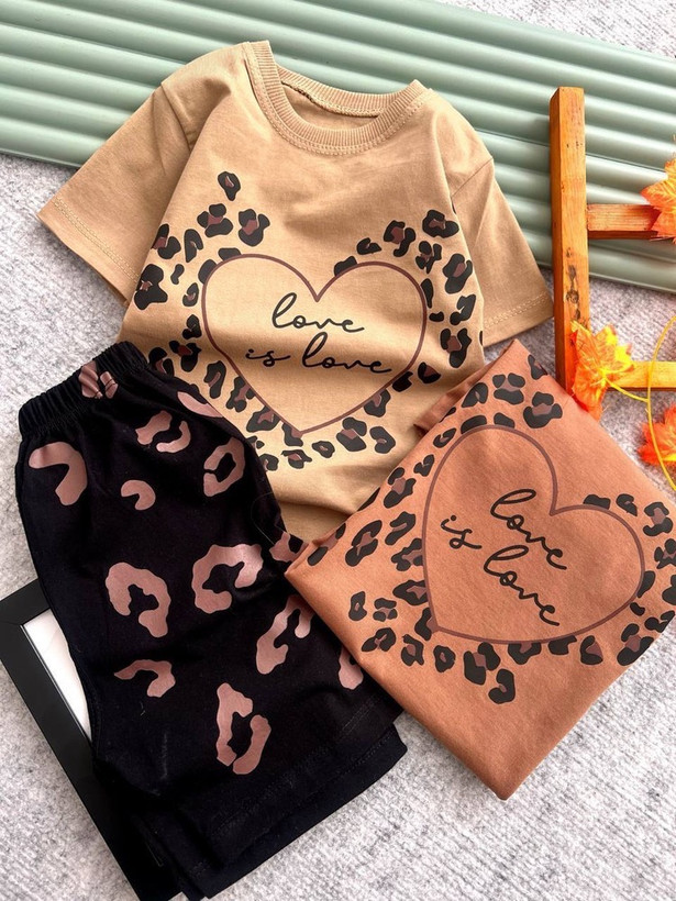 ست تیشرت و شلوارک دخترانه قلبی پلنگی مناسب ۲سال تا۸سال