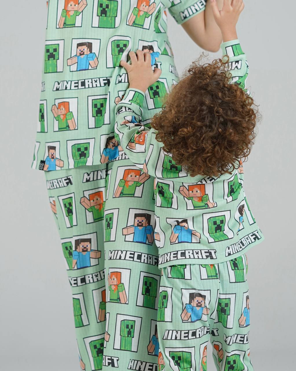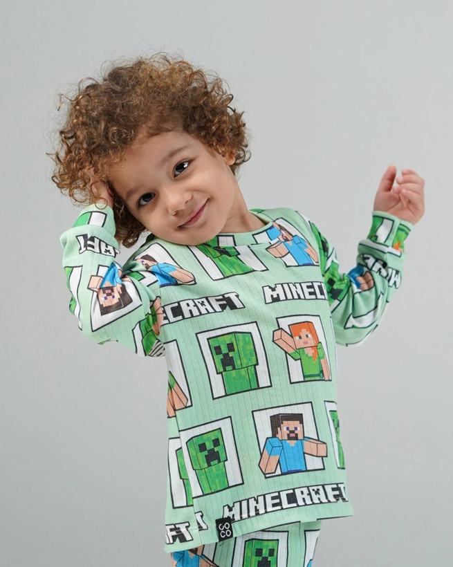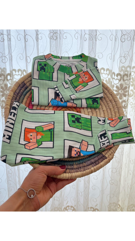 ست راحتی بچگانه بلوز آستین بلند و شلوارکبریتی طرح ماینکرافت 💚برندکوکوcoco