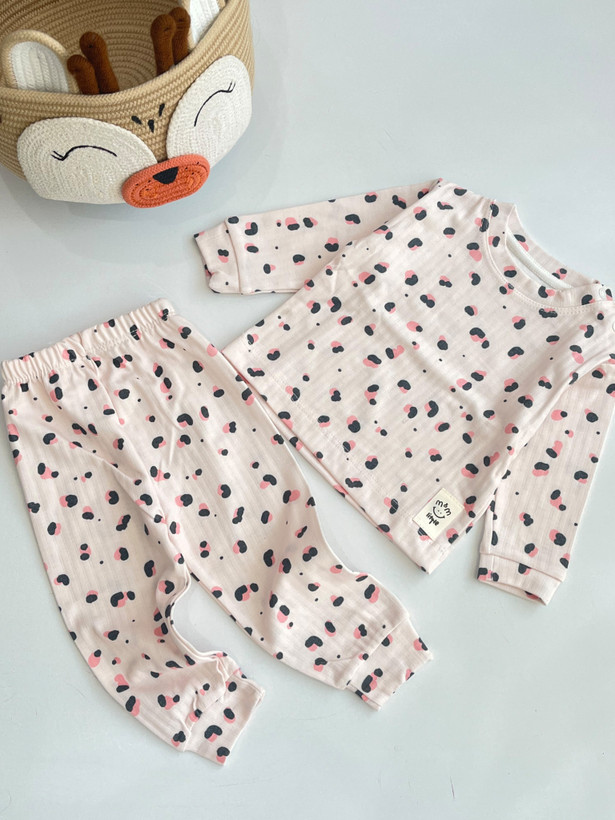 ✅️سایز۱ (۶ تا ۹ ماه): (قد بلوز: ۲۹ / پهنا: ۲۶ / قد شلوار: ۳۹ / فاق: ۱۸)