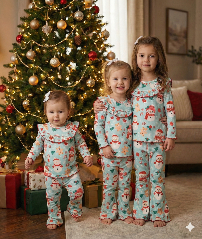 ست راحتی دخترانه اسکاتلندی جامک طرح آدم برفی☃️
