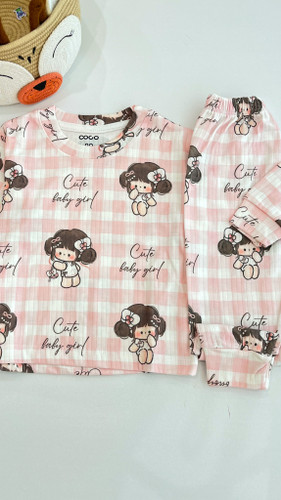 ست راحتی بچگانه بلوز آستین بلندوشلوارکبریتی طرح کیوت گرل🩷 برندکوکوcoco