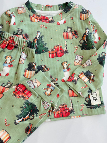 ست بلوز و شلوار نوزادی طرح کریسمس گربه ای🐈🌲